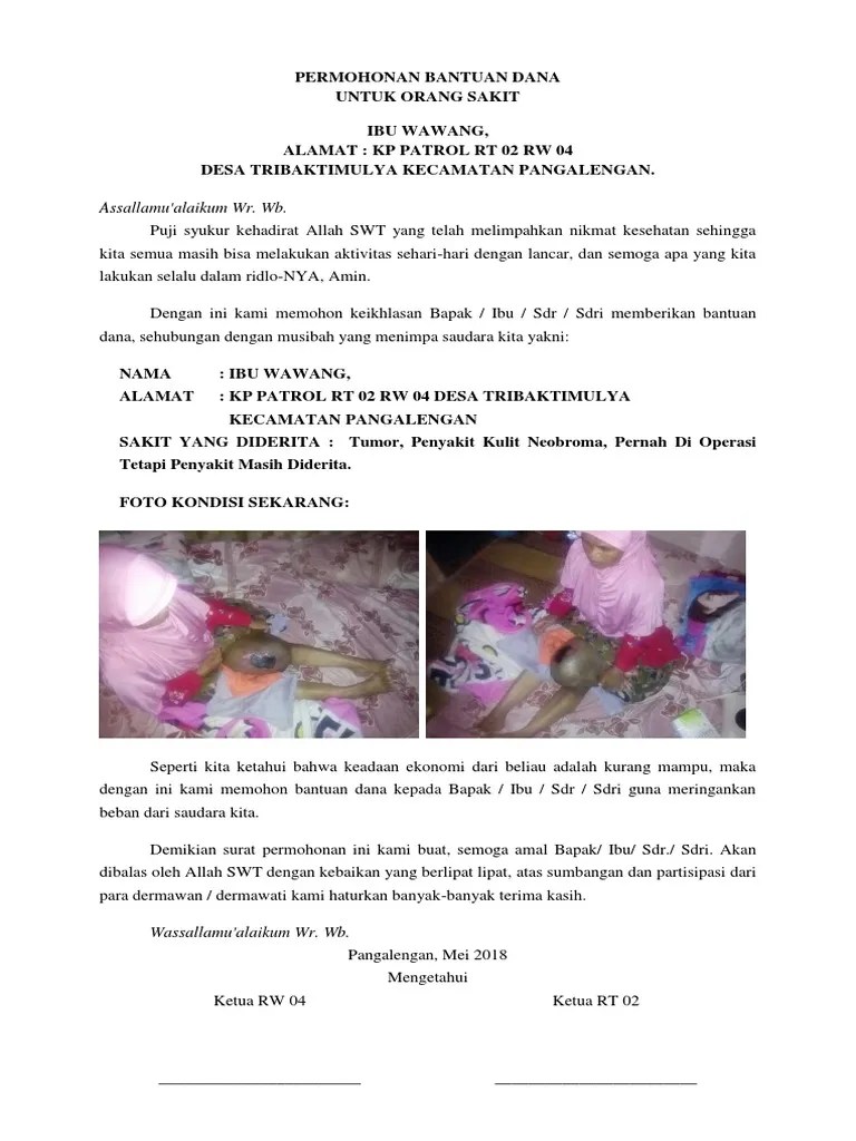 Permohonan bantuan dana orang sakit. Contoh surat sumbangan orang meninggal syeralurh Contoh surat sumbangan sukarela contoh surat. Simak contoh surat permohonan bantuan berikut ini, yuk! Saya adalah orang tua / wali dari pendaftar :