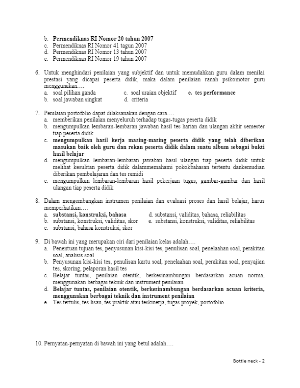 Bentuk soal pilihan ganda, isian, jawaban singkat, benar salah dan.